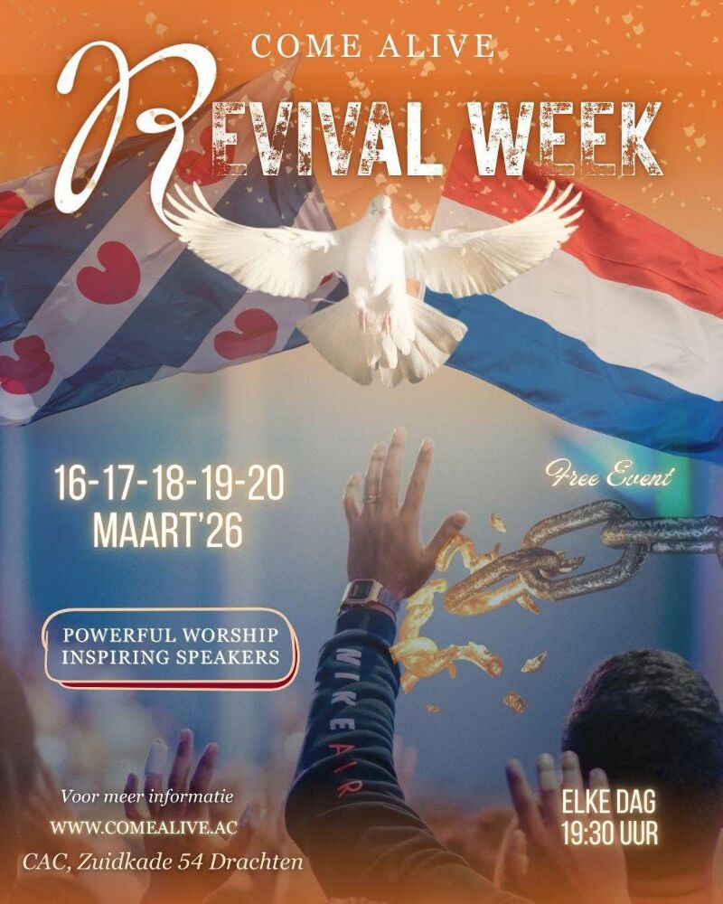 Al deze avonden zullen beginnen om 19.30 uur in het Come Alive Center, aan de zuidkade 54 in Drachten. En zullen zijn op 9-10-11-12-13 maart, let op! De diensten gaan door op 16-17-18-19-20 maart